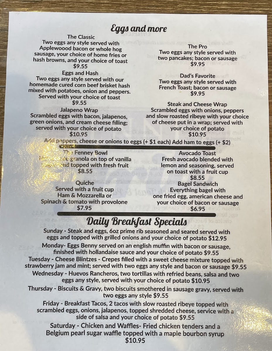 Fenney Grill Menu